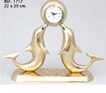 Gold plated clock with double dolphins holding